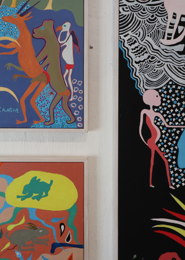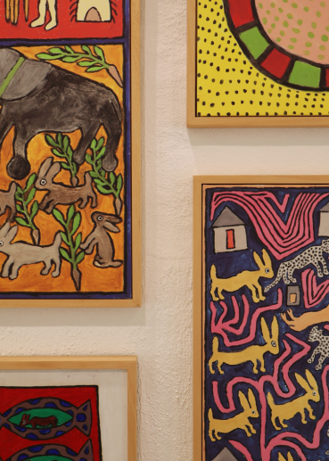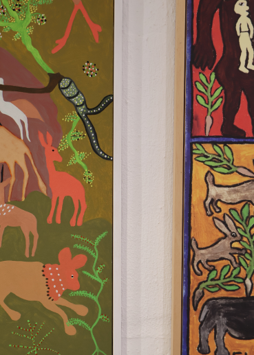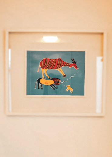 The art in the rooms (fynbos illustrations) is part of the Rondeberg Millennium Collection, done by botanical artist Lynda De Wet. They own the collection of approximately 900 illustrations donated to !Khwa ttu by Mark and Carol Duckitt in 2022. The art in the restaurant and the museum buildings was done by San artists from the Kuru Art Project. https://kuruart.com/